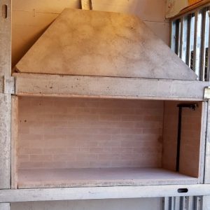 Está revestida en su interior con ladrillos refractarios, cuenta con un herraje de hierro ángulo o redondo enlozado que viene en módulos para facilitar la limpieza de los mismos.
