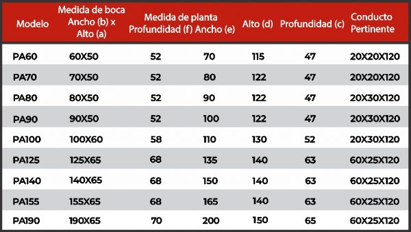 Campana central o lateral, según necesidad de obra.